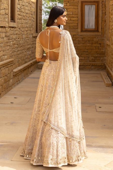 Buy_Arpita Mehta_Ivory Organza, Net Mirrors, Cut Work, Floral Jaal Embroidered Bridal Lehenga Set_at_Aza_Fashions