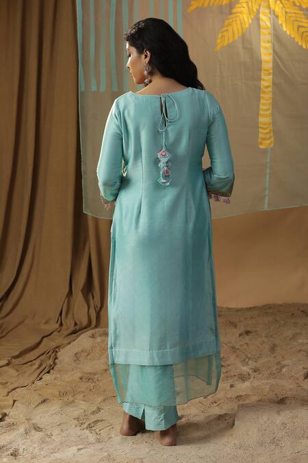 Buy_Arpita Sulakshana_Sky Blue Chanderi Beads, Stones Round Palm Tree Embroidered Kurta And Pant Set _Online_at_Aza_Fashions