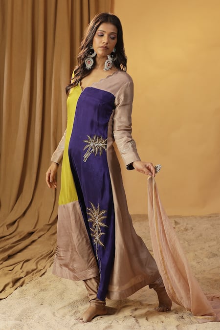 Scallop edged neckline, Leopard print detailing, Gota work embroidery