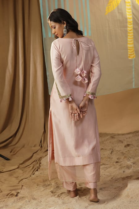 Buy_Arpita Sulakshana_Pink Chanderi Beads, Stones, Patchwork, Palm Tree Yoke Kurta And Pant Set