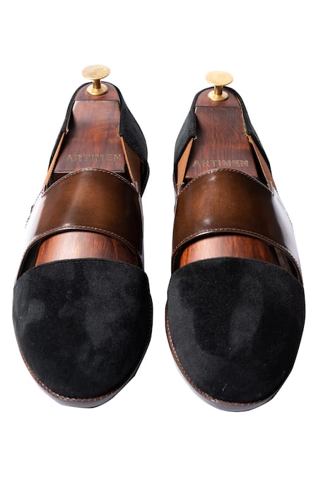 Black Leather, Velvet Handcrafted Cutout Sandals