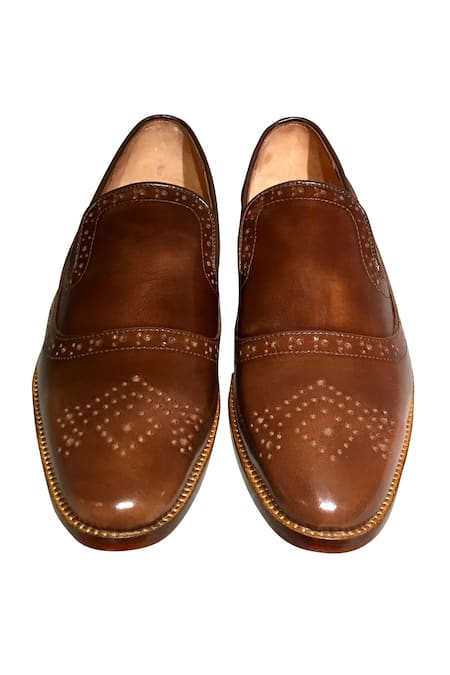 Buy_Artimen_Brown Plain Handcrafted Pure Leather Brogue Loafers _at_Aza_Fashions