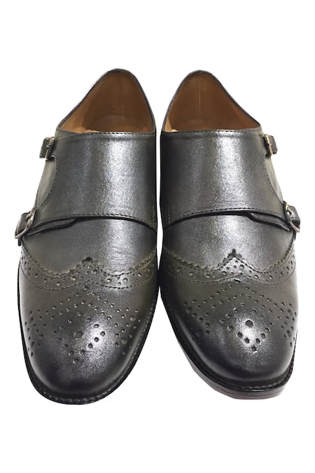 Buy_Artimen_Green Hand Painted Textured Double Monk Shoes_Online_at_Aza_Fashions