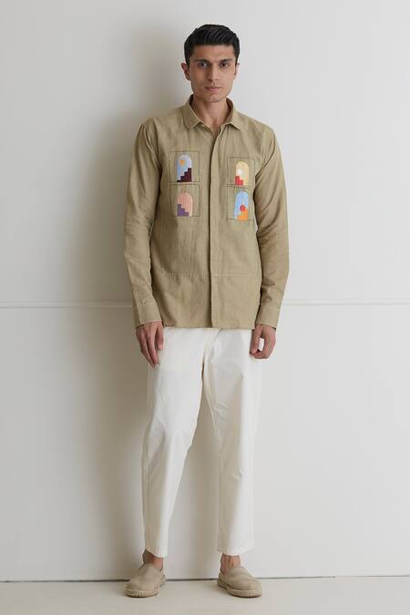 Beige Cotton Linen Thread Sun And Shadows Shirt