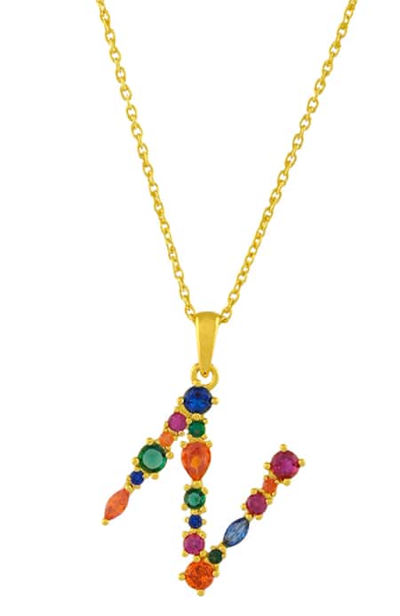 Multi Color Alphabet N Studded Gemstone Pendant Necklace