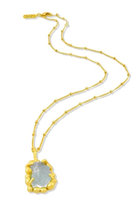 Gold Plated Aquamarine Sorcery Crystal Studded Pendant Necklace