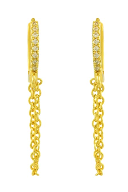 Gold plated chained lobe huggies featuring zircon stone accents