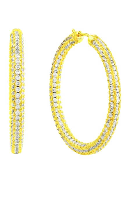 Gold Plated Crystals Cubic Zirconia Studded Glitzy Hoops