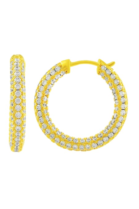 Cubic zirconia stone embellishments, 14kt premium gold plating, Starry hoop design