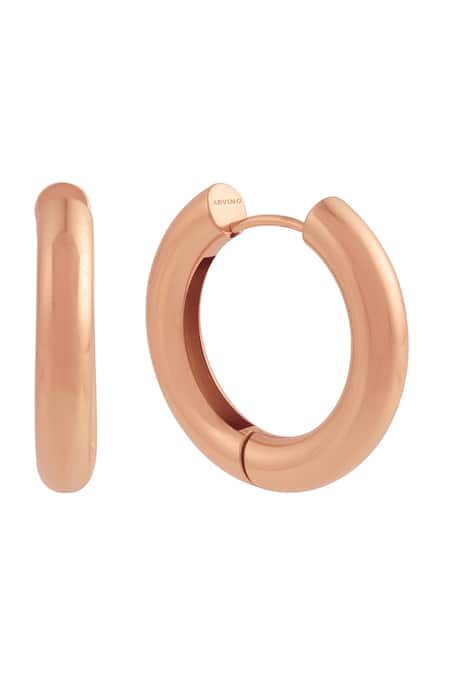 Rose gold bali hoops featuring a sleek pattern with a hinge lock closure