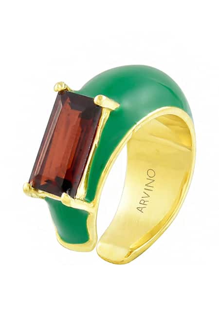 Green enamelling adds a vibrant touch, Garnet stone provides a rich contrast, Lightweight design for comfortable wear