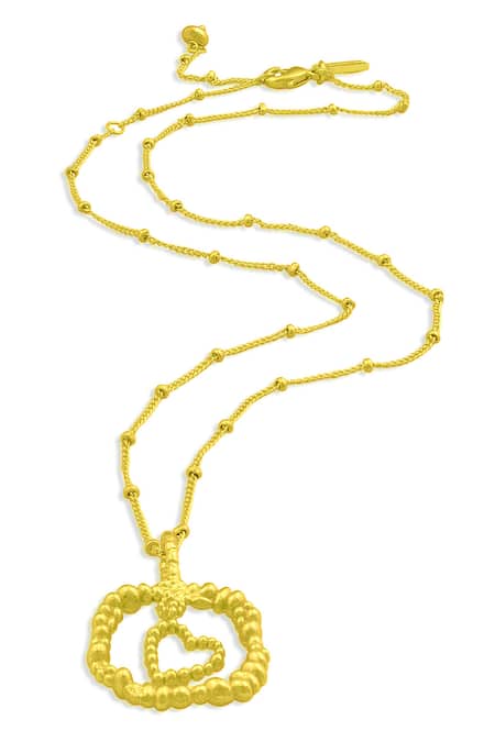 Gold pendant necklace featuring a unique love charm design