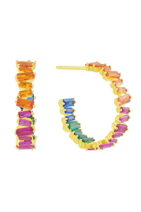 Multi-colored stone embellishments, Push back closure for secure fit, Crafted from recycled bronze