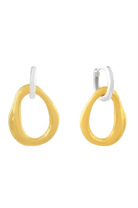 Gold dual tone earrings featuring a modern design with a hinge lock closure