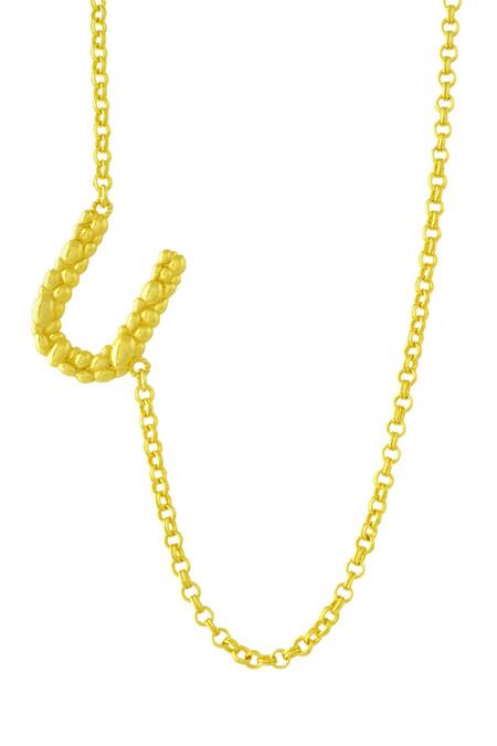 Gold Plated Recycled Bronze U Shaped Charm Pendant Necklace