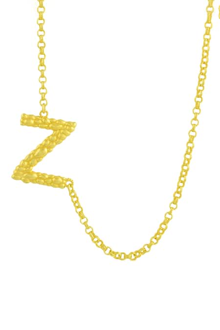 Gold Plated Recycled Bronze Z Shaped Charm Pendant Necklace