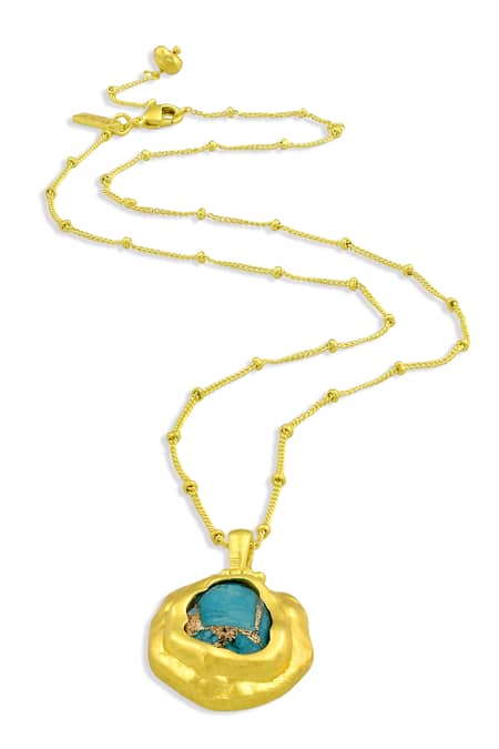 Real gold plating on recycled bronze, Turquoise mineral charm with unique texture, Adjustable chain length for versatile styling