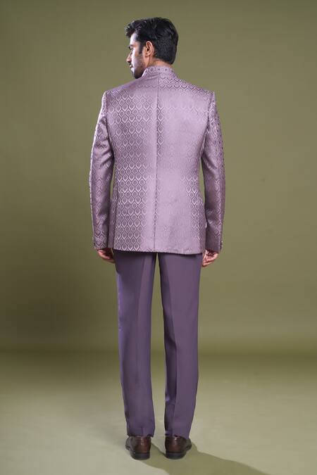 Purple Jacquard, Viscose, Satin Embroidery Bullian Bloom Bandhgala With Pant