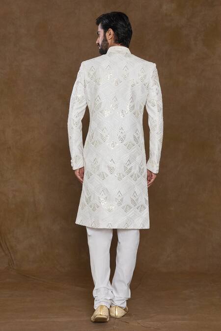 Buy_Arihant Rai Sinha_White , Chanderi Beads, Chevron Pattern Embellished Sherwani Set_Online_at_Aza_Fashions