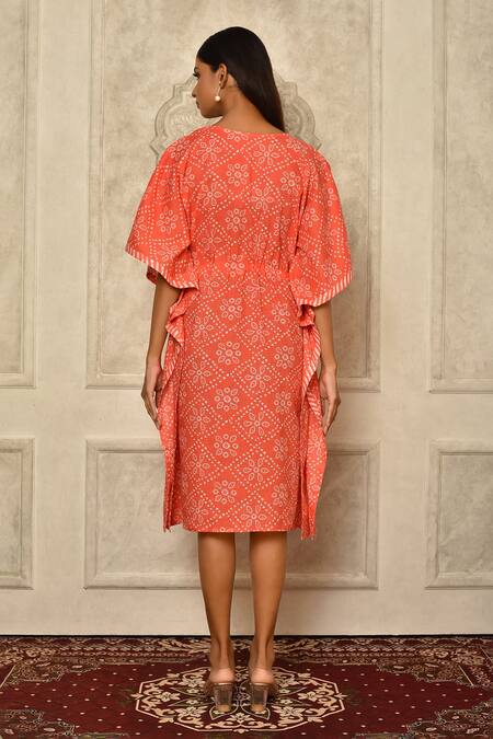 Buy_Aryavir Malhotra_Peach Cotton Bandhani Print Kaftan_Online_at_Aza_Fashions