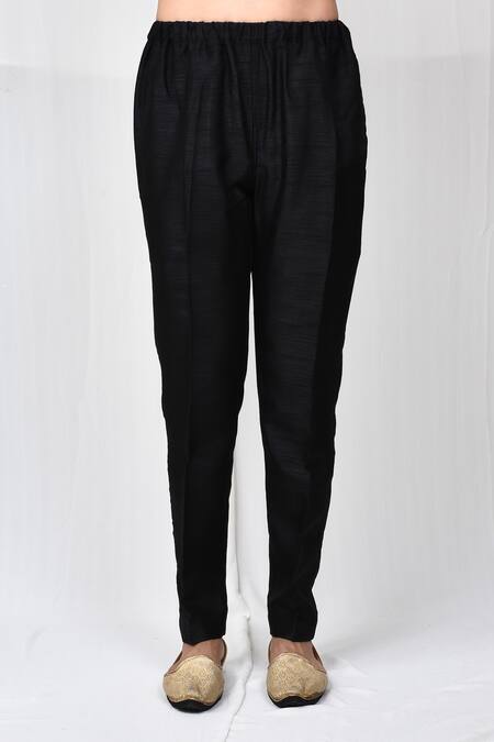 Black pant made from art silk featuring an elasticated waistband and side pockets