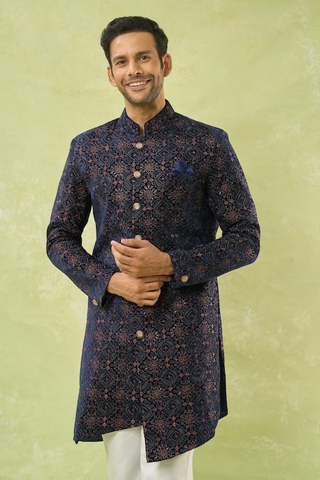 Blue Velvet, Polyester Embroidery, Sequins Floral Sherwani Set