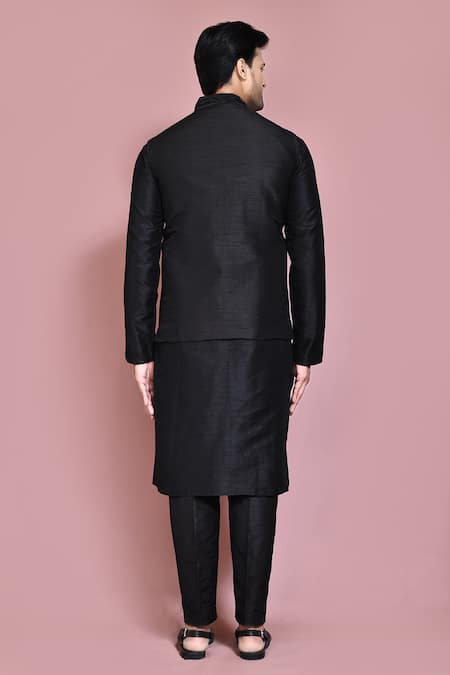 Buy_Arihant Rai Sinha_Black Silk Embroidery Nehru Jacket Kurta Set _at_Aza_Fashions