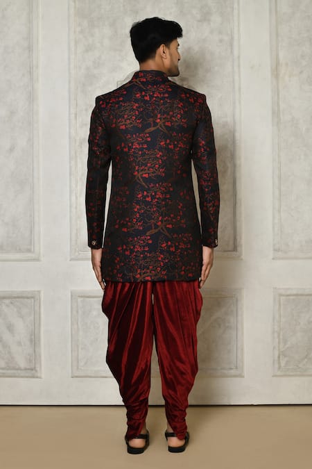 Multi Color Jacquard, Velvet Floral Branch Pattern Sherwani With Dhoti Pant