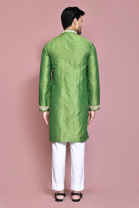 Buy_Arihant Rai Sinha_Green Cotton, Silk Embroidery Floral Kurta With Pyjama _Online_at_Aza_Fashions