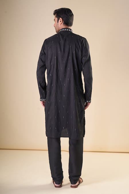 Buy_Arihant Rai Sinha_Black , Satin Sequins, Embroidery Floral Straight Kurta With Pyjama_Online_at_Aza_Fashions