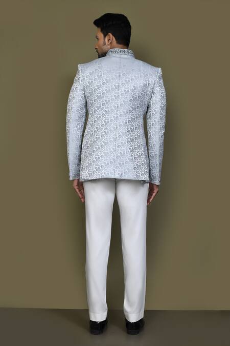 Buy_Arihant Rai Sinha_Grey Jacquard, Silk Cut Work, Beads Flower Woven Bandhgala_Online_at_Aza_Fashions