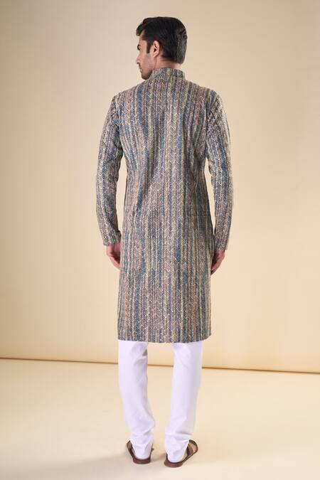 Navy blue straight kurta crafted in cotton featuring a geometric pattern all over