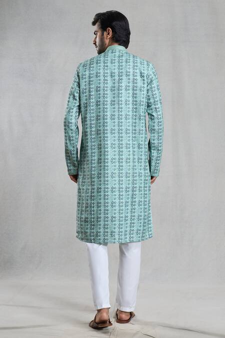 Buy_Arihant Rai Sinha_Green Viscose, Polyester Geometric Print Straight Kurta And Pant Set_Online_at_Aza_Fashions