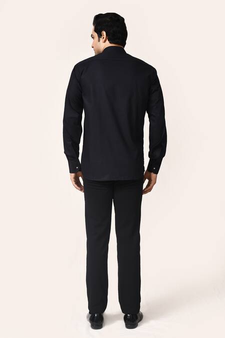 Buy_Aryavir Malhotra_Black Linen Embroidery Hand Work Navy Blue Shirt_Online_at_Aza_Fashions