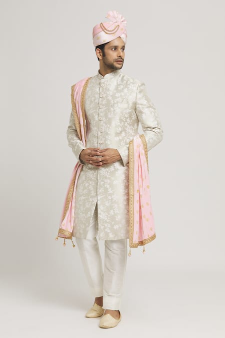 The sherwani and pant worn by the model are not for sale.