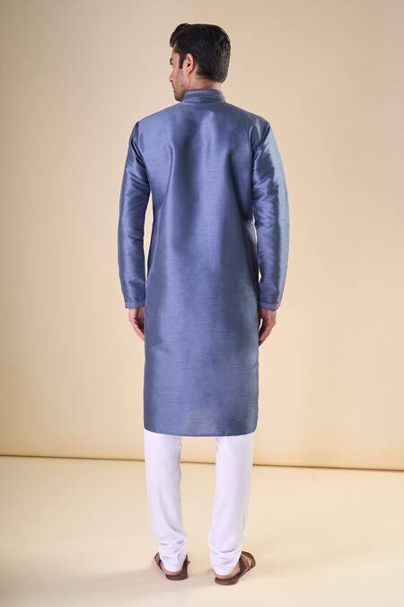 Blue Silk Plain Straight Kurta