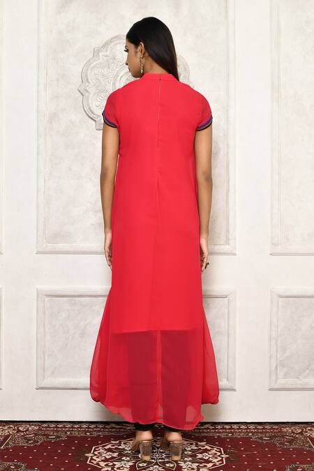 Buy_Aryavir Malhotra_Coral Kurta Georgette Embroidered Pleated Cowl Draped And Pant Set _Online_at_Aza_Fashions