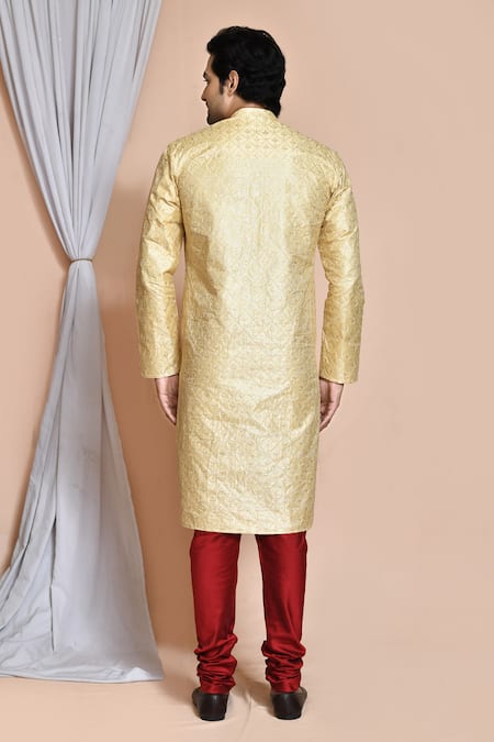 Buy_Arihant Rai Sinha_Gold Silk Embroidery Resham Work Kurta And Churidar Set _Online_at_Aza_Fashions