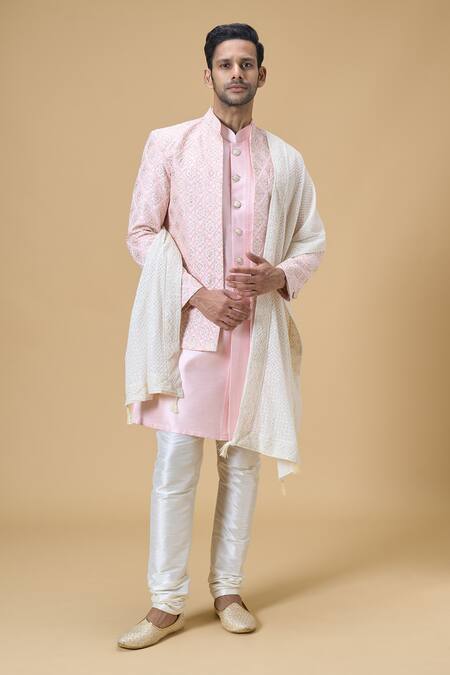 Sherwani, jacket and churidar worn by the model is not for sale.