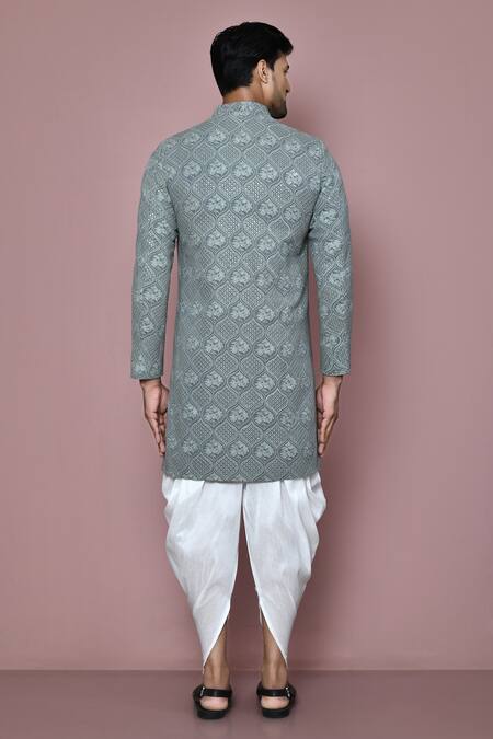 Buy_Aryavir Malhotra_Grey Banarasi Dupion Embroidery Sequin Layered Sherwani With Dhoti Pant _Online_at_Aza_Fashions