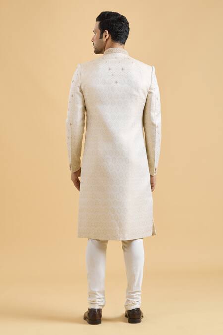 Buy_Arihant Rai Sinha_Cream Brocade, Polyester Embroidery Star Pattern Sherwani With Churidar