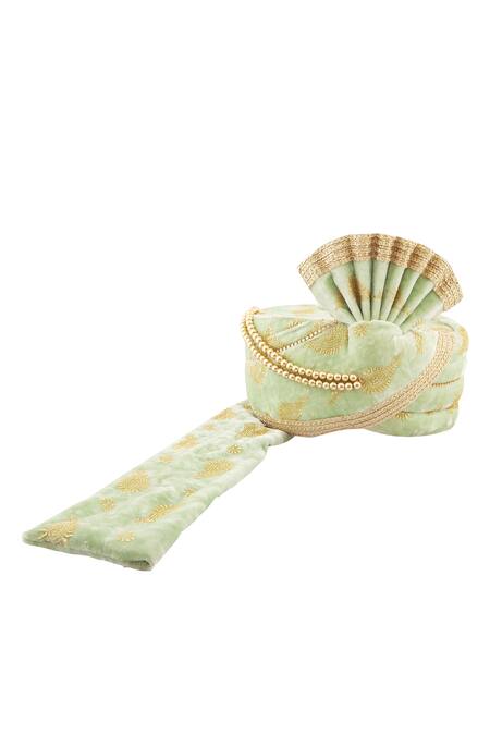 Green Embroidery, Beads, Zari Velvet Embellished Safa