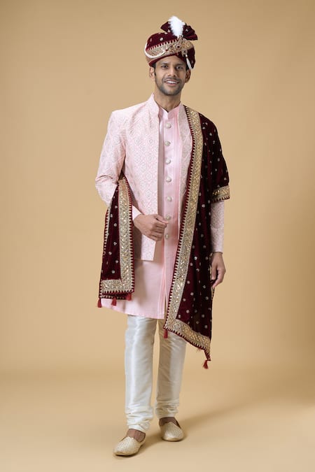 Only the dupatta and safa set is being sold. The jacket, sherwani, churidar, and kalangi worn by the model are not for sale.