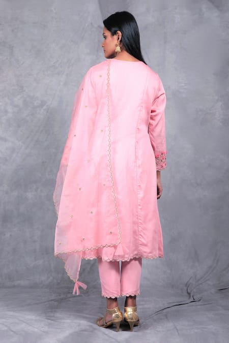 Anarkali: Chanderi Silk, Cotton; Pant: Mul Cotton; Dupatta: Organza