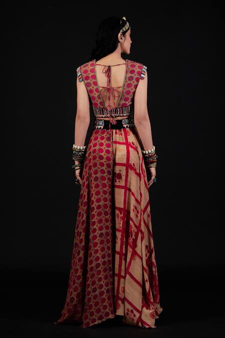 Multi color blouse, featuring exquisite resham thread embroidery, mirror and beads with multiple prints.