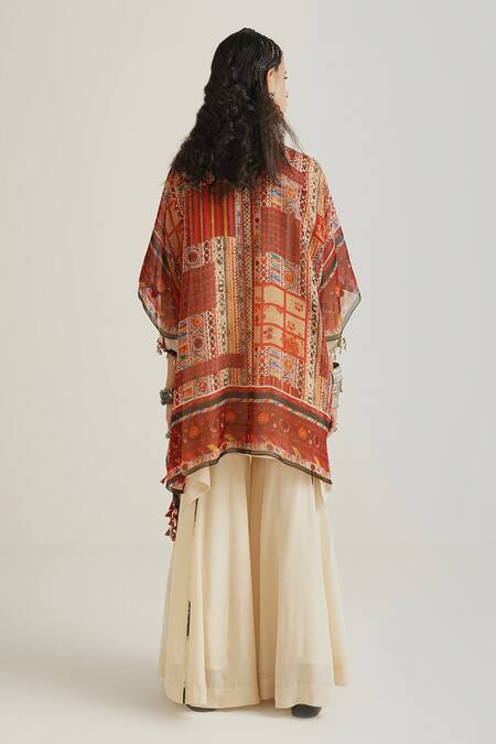 Tassel details >Asymmetric kurta >Front open jacket