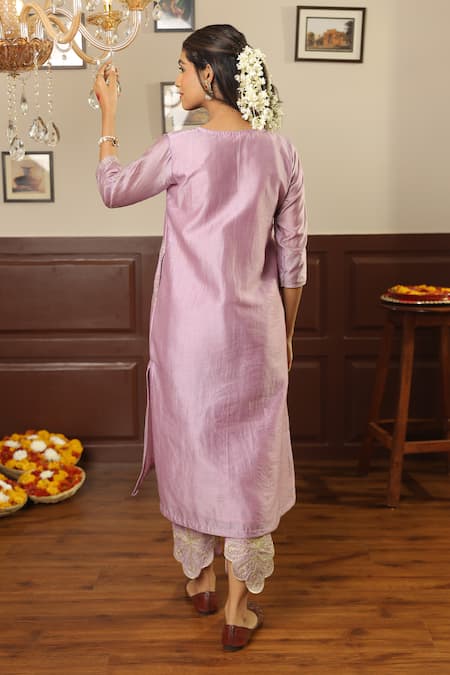 Purple Chanderi Embroidery Split V-neck Placement Zari Kurta Set