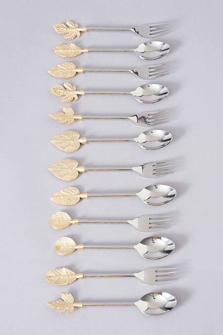 Silver Brass, Stainless Steel And Spoon And Fork Set