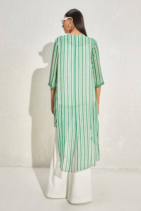 Shop_Namrata Joshipura_Green Georgette Hand Embellished Floral Patterns Aster Striped Long Back Tunic_Online_at_Aza_Fashions