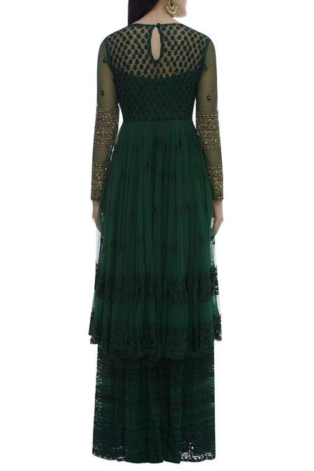 Dark green floral motif work anarkali kurta paired with matching gharara & dupatta.